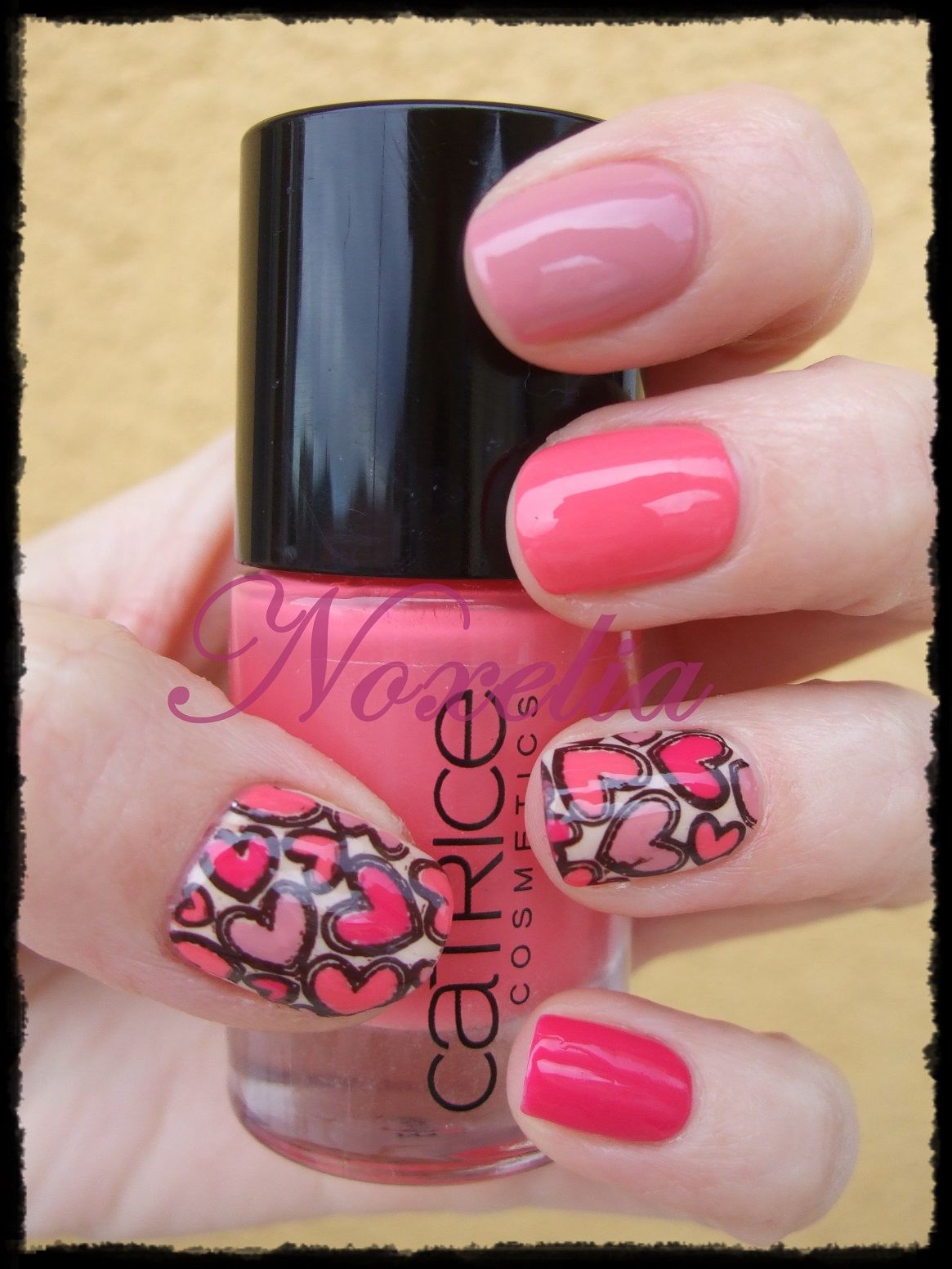 No me digáis que no son divertidos! Me parecen muy curiosos los esmaltes mas chiquititos para decorar, tienen un pincel tan fino que seguro que es muy práctico pero tendrán que esperar para ser estrenados porque los elegidos en esta ocasión han sido los potentorros, mirar la manicura que se me ocurrió hacer :D