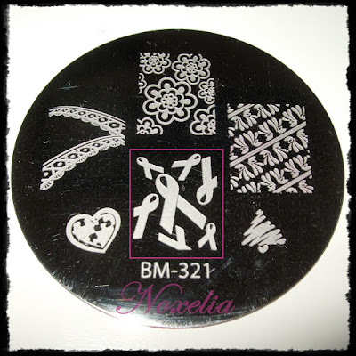 Esta plaquita la tengo desde hace bastante tiempo pero nunca me animaba con ella porque sus diseños son algo grandecillos y para poder utilizarla tengo que reducir los diseños, por suerte este diseño en concreto no necesitó ser encogido porque mas o menos entra en mi uña del anular.